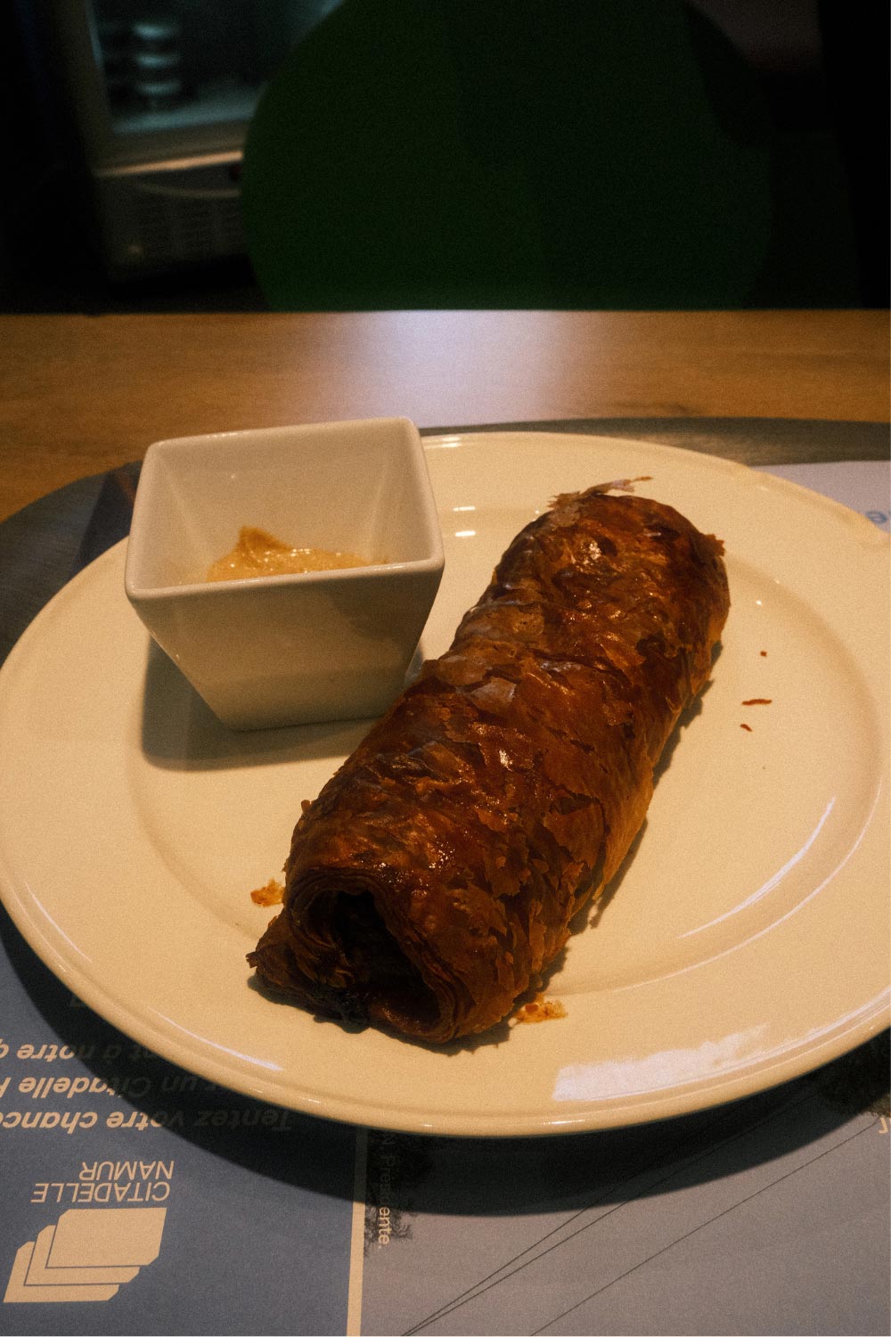 Next to the Visitor Center, you will find Made in Namur, a small shop focused on local products and souvenirs. Here you can buy things made in and around the city, such as local beer, sweets, and other regional products. There is also space to sit down for a drink or a small snack. Kelvin tried avisance here, a puff pastry filled with minced meat. He really liked it! Make sure to ask for some local mustard to go with it.